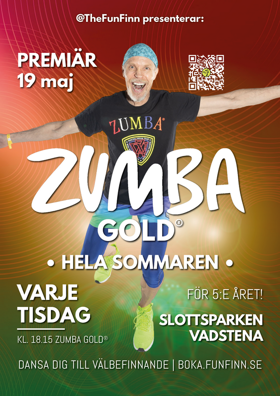Välkommen till magisk Zumba Gold®-dans i Slottsparken i Vadstena, tisdagar kl. 18.15 hela sommaren! Rör på dig tillsammans med härliga människor till inspirerande rytmer från hela världen. Finn formen. Forma leendet. Välkommen till dansgolvet där du platsar. Passet är 55 min. långt. Du rör på dig i ditt eget tempo. Koreografin är utan hopp i stegen.