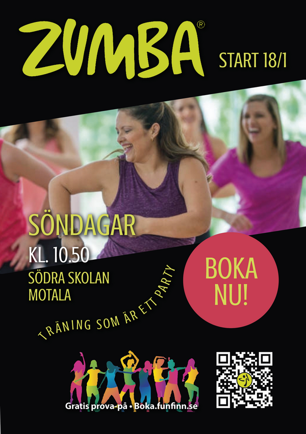 Välkommen att dansa Zumba® i Motala, söndagar kl. 10.50 våren 2026, plats Södra skolans Nya gymnastiksal i Motala! Vi träffas sammanlagt 14 ggr t.o.m. den 3 maj, med uppehåll den 8 mars och den 5 april